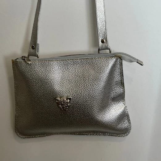 Otra hermosa cartera de cuero chileno, disponible en dorado y plateado. Muy fáciles de combinar para distintas ocasiones, un hermoso accesorio para cualquier look.